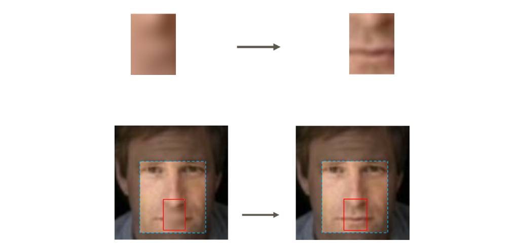 图1. 对局部区域进行超分辨率重建时,给出相关高清区域信息将使复原变得更为简单