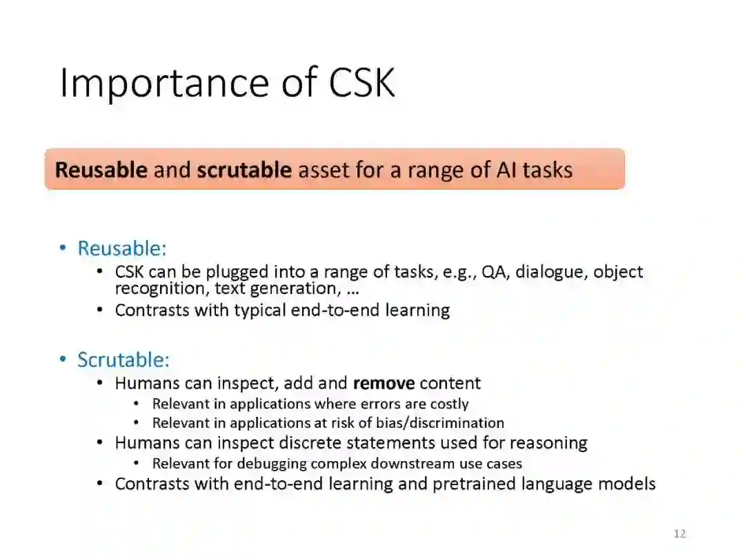 后台回复“CSK” 就可以获取《常识如何用?WSDM2021「常识知识」这份教程讲述常识提取、方法与评估,附170页ppt与视频》专知下载链接