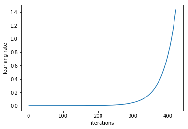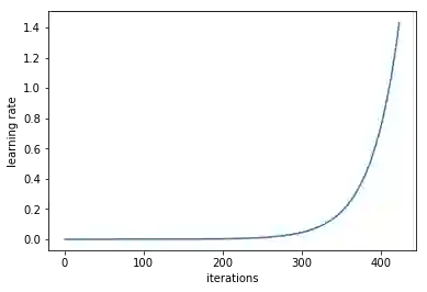 在「训练神经网络的周期性学习速率」[4] 的 3.3 节中,Leslie N. Smith 认为,用户可以以非常低的学习率开始训练模型,在每一次迭代过程中逐渐提高学习率(线性提高或是指数提高都可以),用户可以用这种方法估计出最佳学习率。