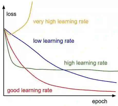 学习速率是指导我们该如何通过损失函数的梯度调整网络权重的超参数。学习率越低,损失函数的变化速度就越慢。虽然使用低学习率可以确保我们不会错过任何局部极小值,但也意味着我们将花费更长的时间来进行收敛,特别是在被困在高原区域的情况下。