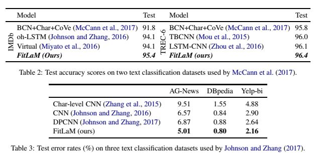 下表证明 [9] 中引入的方法能够在各种 NLP 分类任务中提高准确度且降低错误率。