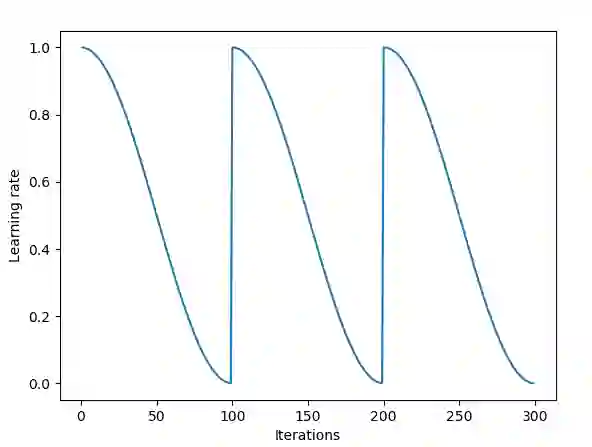 在 [2] 中,Leslie 提出了一种「三角」方法,这种方法可以在每次迭代之后重新开始调整学习速率。