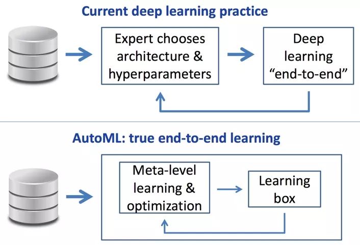 之前还存在如何调参、如何选架构的问题,最近随着自动机器学习(AutoML)的快速发展,Neural architecture search(NAS)似乎都可以做到自动选择深度学习架构,Hyperparameter优化可以帮助做到自动超参数的选择, 机器学习变得越来越傻瓜,容易上手,原来的伪“end-to-end”好像真的要转正了。