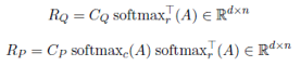 带*号的向量是指经过了之前提取的常识知识加强之后的向量。基于以上相似度函数和增强的上下文嵌入,为执行知识辅助的相互关注,首先作者构建了知识辅助的相似度矩阵A,其中A_(i,j)=f^*(C_pi, c_qj)。关注段落的问题总表示R_Q和关注问题的段落总表示R_p为: