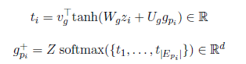 作为精记忆层的一部分,知识辅助的自我关注旨在将粗记忆层G融合到自身中。作者使用预先提取的常识来确保每个段落词的粗记忆融合仅涉及其他段落词的精确子集。特别的,对于每个段落词 p_i,粗记忆是g_pi,提取到的常识集合为E_pi,通过搜集G的列(索引由E_pi给出)可以获匹配的粗记忆,然后构造一个g_pi参与的Z总表示,可以获得匹配的向量 g_(pi)^+: