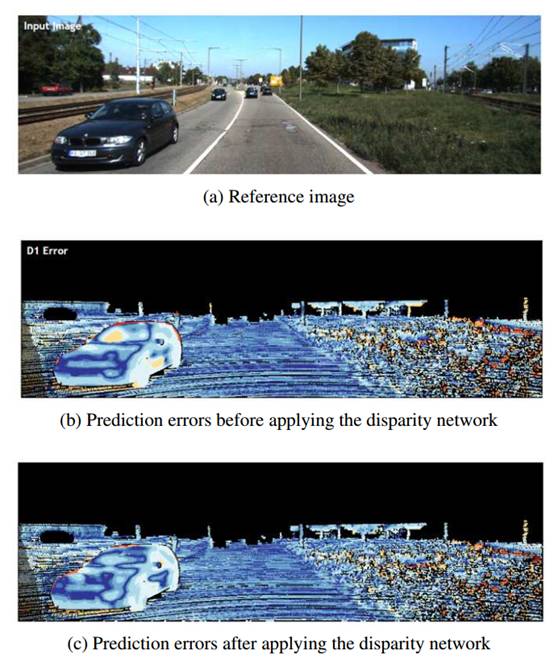 图2 从KITTI2015中选取一张示例图片。可以看到前挡风玻璃处的明显变化。