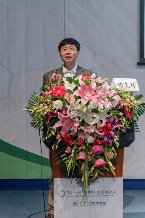 曲久辉院士以“水质净化及资源化的物质流与能量流调控”为题做大会主旨报告。