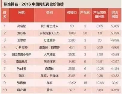 在机构发布的“2016中国网红商业价值榜”中,薛之谦名列第10位。