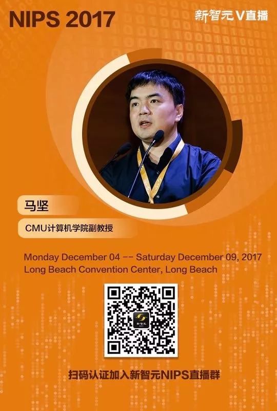 关于Tutorial和Workshop,新智元会专门出报道,敬请期待。同时,新智元智库专家、CMU计算机学院副教授马坚老师将在美国长滩带来现场直播,关注新智元小程序或加入直播群,参与直播互动,第一时间了解马坚教授带来的NIPS前沿资讯。扫码入群详见文末。