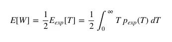 已知乘客的期望等待时间E[W]是他们体验到的公交车到站间隔的一半,我们可以把它写成: