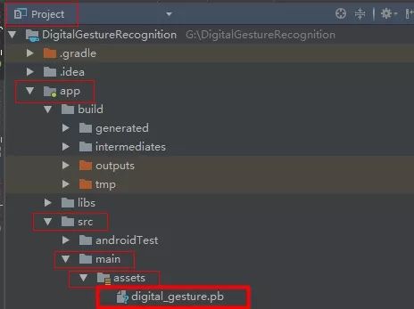 首先把训练好的pb模型放到Android项目中app/src/main/assets下,若不存在assets目录,则自己新建一个。如图所示: