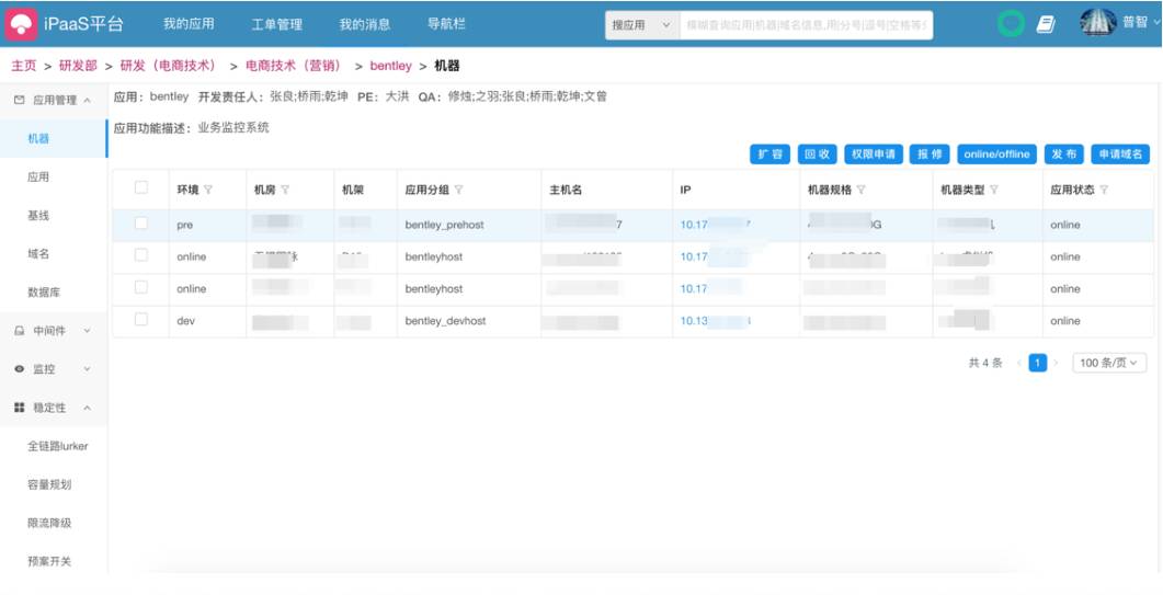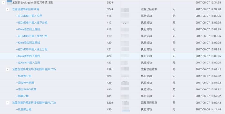 有流程审批,流程审批结束以后,运维系统里面做的第一步,应用的基本信息插入到应用管理系统里面,同时设备管理系统里面自动的创建分组,分配机器。