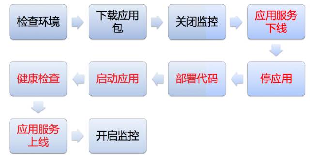 接下来通过监控系统接口关闭相应服务器上监控项;接下来执行应用目录下的应用启停脚本,通知 RPC 调用方或 Web 代理该服务器即将下线。