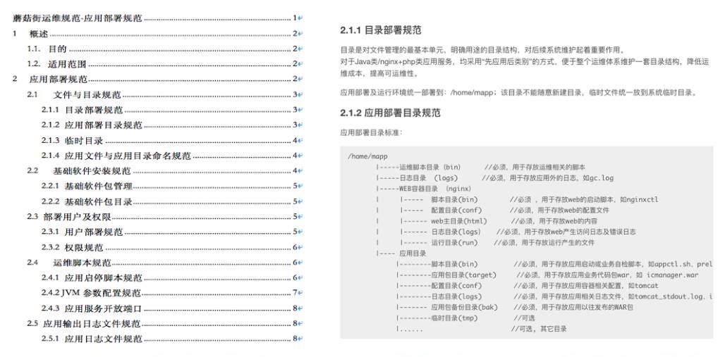 标准化文档里面主要就是规范上述一些内容,这些内容为后面的运维系统做了规范,我们运维系统都是基于这个规范来做。