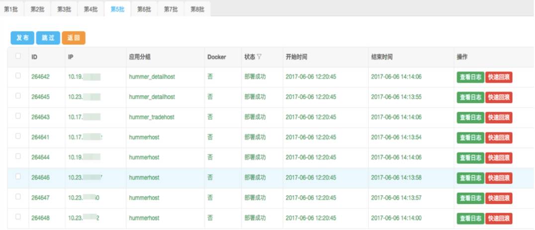暂停一定时间后,再执行应用启停脚本中停止指令,停掉 Nginx 和 Web 容器;确认应用服务停止后,将应用包同步到运行目录里面解压、启动应用。