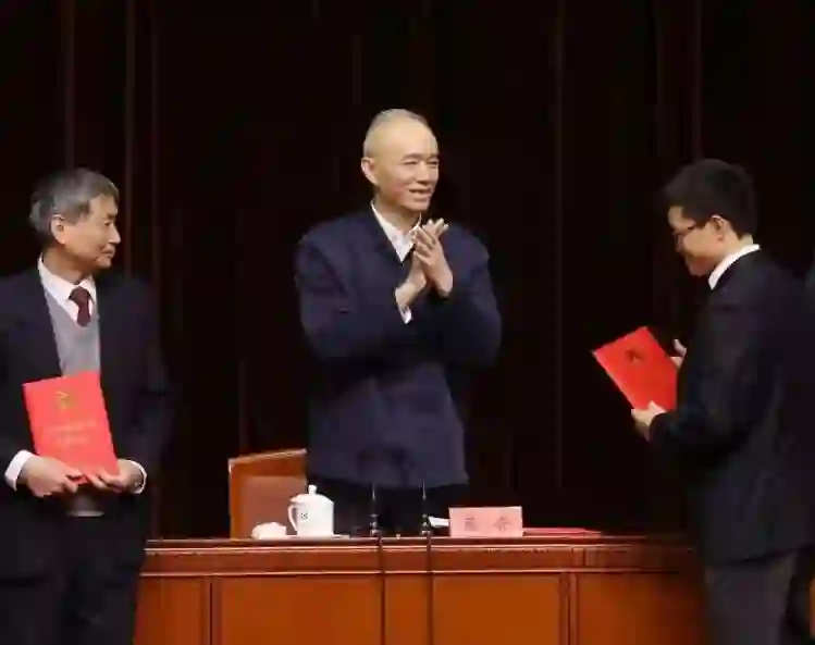2月5日上午,在北京会议中心大报告厅,中科院院士、中科院化学所研究员刘云圻,清华大学计算机系副教授唐杰等科学家代表,从市委书记蔡奇,市委副书记、市长陈吉宁,科技部副部长李萌等科技部和北京市领导手中接过北京市科学技术奖一等奖获奖证书。