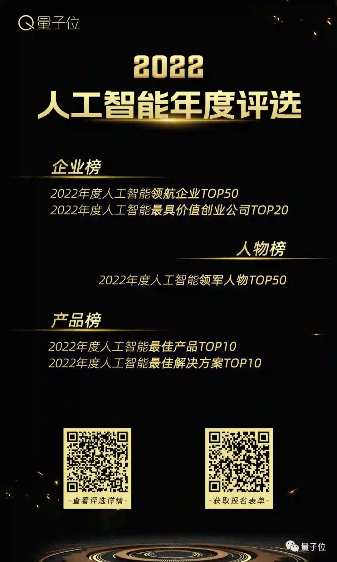 今年评选将从企业、人物、产品/解决方案三大维度设置5类奖项。量子位将坚持一贯的权威性、公信力以及专业性的核心价值观,秉承客观公正的原则,以企业提交的真实数据为基础,结合量子位对公司的深入调研及数十位行业知名专家的意见,评选出具有参考价值的榜单结果。