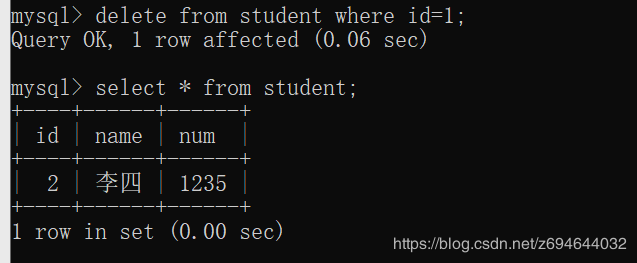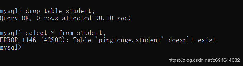 如果命令执行成功的话,再次执行 select * from student 命令,查看数据是否恢复。
