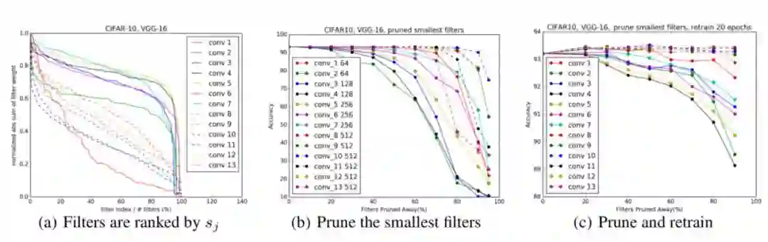 在剪枝的过程中,如何确定每层的最优剪枝比例和具体要裁剪的 filter,来达到整个模型的最优压缩比是该方法中要解决的问题,对于选择哪些 filter 进行裁剪,常规的方案和细粒度剪枝类似,对不同 filter 的参数计算了 l1_norm,选择值较小的 filter 进行裁剪。