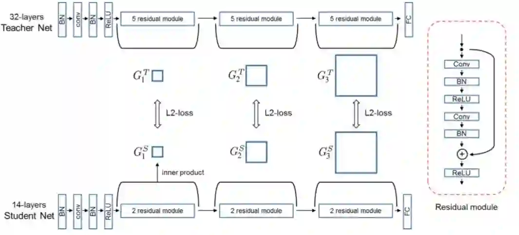这种方法的优势,通俗的解释是,比如将蒸馏类比成 teacher(大模型)教 student(小模型)解决一个问题,传统的蒸馏是直接告诉小模型问题的答案,让小模型学习,而学习 FSP 矩阵是让小模型学习解决问题的中间过程和方法,因此其学到的信息更多,最终效果也更好。