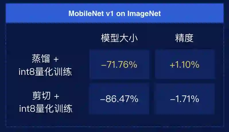 量化训练与蒸馏的组合使用,可同时做到缩减模型大小和提升模型精度。