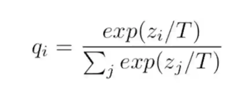 另外,为了使 soft target 中各个类别的概率值更加平滑,文章中还引入了一个温度系数 T 的概念,对大模型输出的概率值做一个平滑处理,具体如下面公式。
