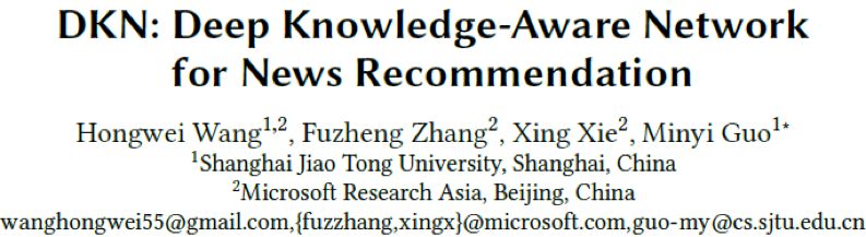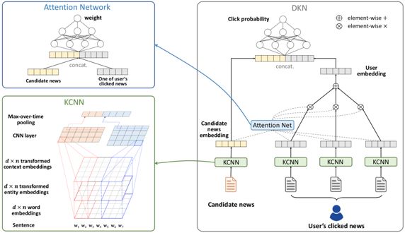 1)新提出的DKN模型是基于内容的深度学习推荐模型,适合像新闻这样的具有高度时效性的推荐