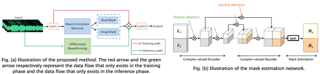 2 带定向麦克风的线性阵列的最小范数差分波束成形 Minimum-Norm Differential Beamforming for Linear Array with Directional Microphones 差分麦克风阵列技术(DMA,differential microphone array)或者差分波束成形技术(differential beamforming),由于具有较多的物理特性优势,尤其适合语音信号处理,近年来成为信号处理领域研究热点,同时在工业界也被广泛使用。 我们在差分麦克风阵列理论研究持续耕耘,继去年收录环形阵列差分波束论文之后,本次收录论文进一步在线性阵列上面拓展研究,利用指向性麦克风在线性麦克风阵列上进行差分波束设计,我们将提出的方法称之为线性差分指向性麦克风阵列(Linear differential directional microphone array (LDDMA)), 此方法扩展了线性差分阵列(linear differential microphone array,LDMA)的设计理论,通过理论分析证明,指向性麦克风组成的差分阵列可以在WNG(白噪声增益)和DI(指向因子)两个维度都比目前业界常用的全向性麦克风组成的差分阵列取得明显优势。同时也探索了指向性麦克风的陷零点和差分波束陷零点的数学关系。 3 基于神经网络掩码和注意力模型的实时多通道语音增强 Real-time Multi-channel Speech Enhancement Based on Neural Network Masking with Attention Model 近年来,虽然语音增强方法的性能得到了很大的提升,但是在远场和复杂的会议室环境中,基于麦克风阵列的语音增强方法仍然有一系列开放的问题需要进一步解决。 本文提出了一种实时的多通道语音增强方法,它由所设计的带注意力机制的复数值掩码估计网络和差分波束形成两个部分组成。 具体来说,在训练阶段,复数值掩码估计网络从多通道数据中估计出单通道目标掩码。在测试阶段,为了进一步抑制噪声,我们首先利用差分波束形成技术来抑制来自非目标方向的干扰信号,从而获得相对干净的频谱。然后将估计的掩码作用于差分波束成形所输出的频谱,作为最终的输出结果。 实验结果表明,本文所提出的方法在PESQ和MOS等指标上取得了优于现有技术的性能。 4 在混响环境中使用定向麦克风阵列进行 DOA 估计的 Cramer-Rao 下限 Cramer-Rao Lower Bound for DOA Estimation with an Array of Directional Microphones in Reverberant Environments 目前主流的DOA估计方法主要使用全向麦克风阵列拾取信号,利用麦克风间的相位信息进行DOA估计。本文针对混响环境下DOA估计误差大的问题,使用指向性麦克风阵列代替全向麦克风阵列,结合使用振幅和相位信息,增加DOA方法的鲁棒性,并利用克拉美罗下界(CRLB)进行理论分析。 本文通过建模混响信号为isotropic noise,建立混响的互功率谱密度矩阵,进而计算出对应的费雪信息矩阵,得到DOA估计的CRLB。通过理论分析,即对比CRLB发现对于线性阵列,基于指向性麦克风的误差下界低于基于全向麦克风的误差下界。同时利用SRP、MVDR和MUSIC三种DOA方法通过实验对比表明,基于指向性麦克风的RMSE低于基于全向麦克风的RMSE。 5 基于盲源分离的回声消除、去混响、声源分离统一框架 Joint Online Multichannel Acoustic Echo Cancellation, Speech Dereverberation and Source Separation 回声消除、去混响、声源分离是语音增强系统中的三个主要问题。传统系统通常采用的是级联架构,三个子任务分别由三个独立的模块完成,三个模块有各自的理论背景、目标函数和优化方法。级联架构的系统虽然具有灵活性,但是各自模块的任务迭代到最优,并不等于全局结果达到最优。本文将回声消除、去混响、声源分离这三个子任务都统一到了盲源分离的信号模型框架下,并使用auxiliary-function based in-dependent component/vector analysis (Aux-ICA/IVA)的方法进行求解。本文中的方法具有统一的信号模型、目标函数、迭代方法,实验证明这种统一框架有望比独立模块的系统具有更好的语音增强性能。 达摩院语音实验室论文下载链接:1.极低尺寸的设备端语音识别系统 Extremely Low Footprint End-to-End ASR System for Smart Device 论文链接:https://arxiv.org/abs/2104.05784 论文来源:阿里巴巴达摩院语音实验室独立完成2. EMOVIE: 中文普通话开源情感语音数据库 EMOVIE: A Mandarin Emotion Speech Dataset with a Simple Emotional Text-to-Speech Model 论文链接:https://arxiv.org/pdf/2106.09317.pdf 论文来源:阿里巴巴达摩院语音实验室与浙江大学合作完成 3. 联合文本和音素表征学习的口语理解预训练 Pre-training for Spoken Language Understanding with Joint Textual and Phonetic Representation Learning 论文链接:https://arxiv.org/pdf/2104.10357.pdf 论文来源:阿里巴巴达摩院语音实验室独立完成 4. 区分式自训练的标点预测 Discriminative Self-training for Punctuation Prediction 论文链接:https://arxiv.org/pdf/2104.10339.pdf 论文来源:阿里巴巴达摩院语音实验室独立完成 5. 联合声学特征和空间特征的会议场景混叠语音检测技术 Investigation of Spatial-Acoustic Features for Overlapping Speech Detection in Multiparty Meetings 论文链接:https://www.isca-speech.org/archive/pdfs/interspeech_2021/zhang21w_interspeech.pdf 论文来源:阿里巴巴达摩院语音实验室独立完成6. 带定向麦克风的线性阵列的最小范数差分波束成形 Minimum-Norm Differential Beamforming for Linear Array with Directional Microphones 论文链接:https://www.isca-speech.org/archive/pdfs/interspeech_2021/huang21_interspeech.pdf 论文来源:阿里巴巴达摩院语音实验室独立完成7. 基于神经网络掩码和注意力模型的实时多通道语音增强 Real-time Multi-channel Speech Enhancement Based on Neural Network Masking with Attention Model