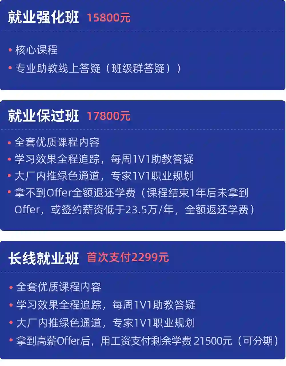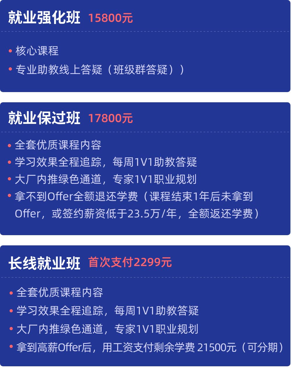 3、保证学员学完之后,拿到高薪的人工智能Offer,再支付剩下学费。