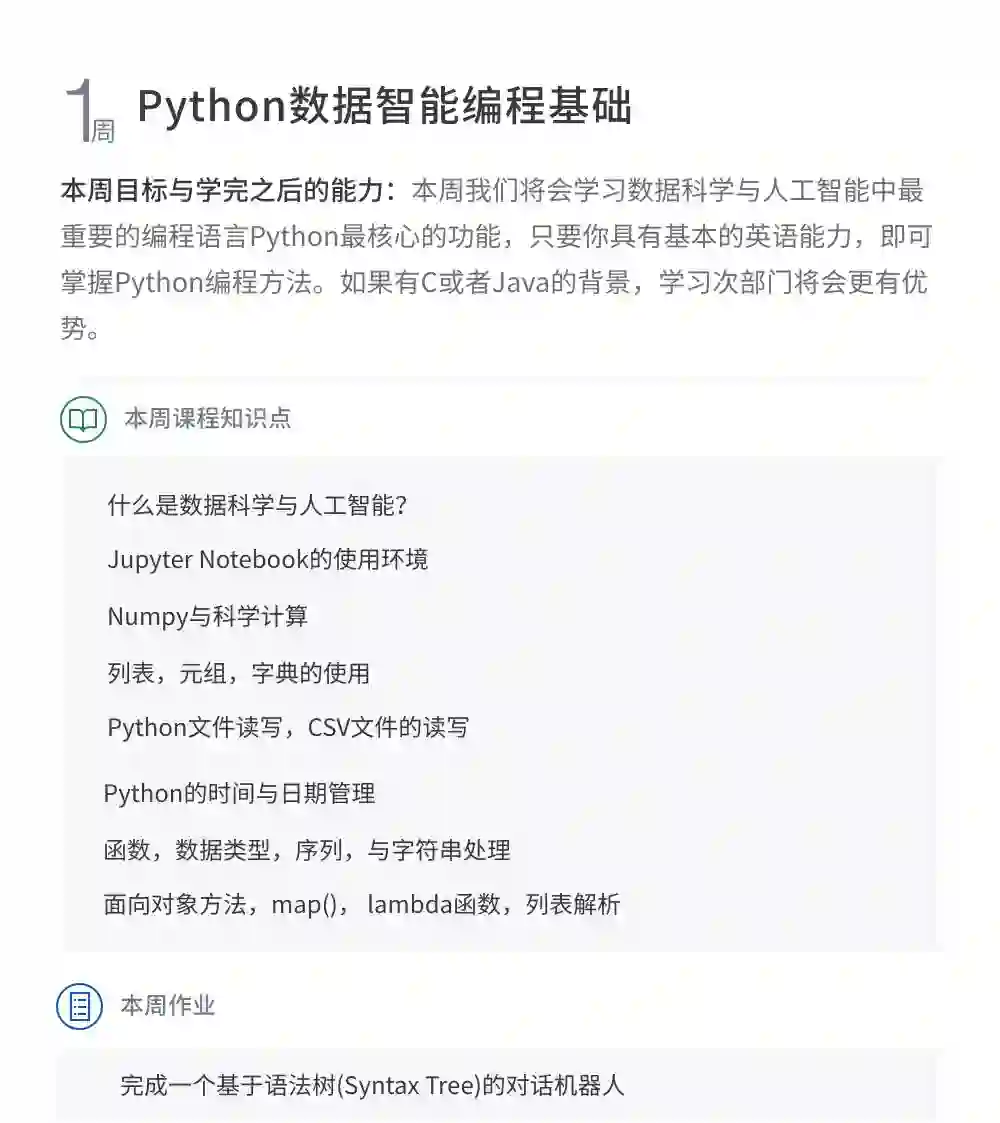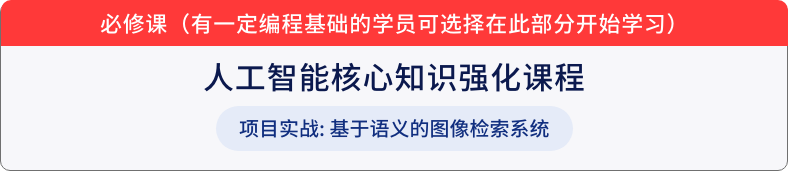 为零基础学员打造,课程搭配「选修课 + 必修课 + 必选课 +人工智能核心名企项目实训」,0基础学生也可以学习,有一定基础的学员可根据能力阶段进行学习,我们会配备教务老师为您选择适合您的学习路径,
