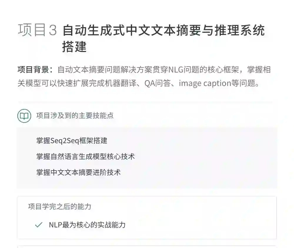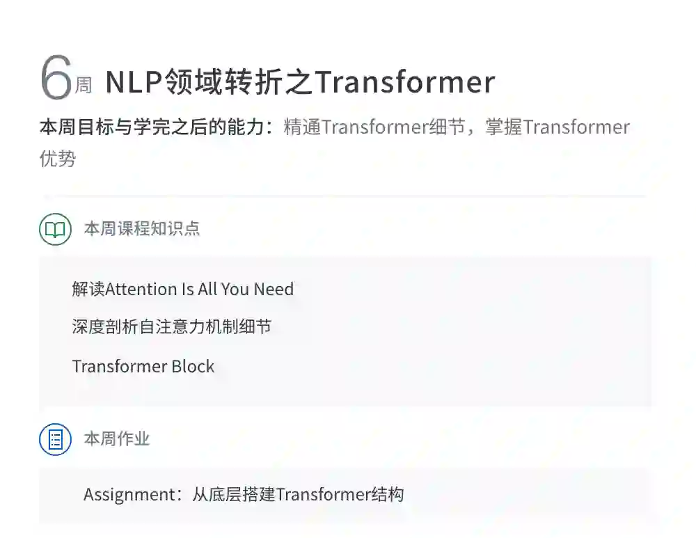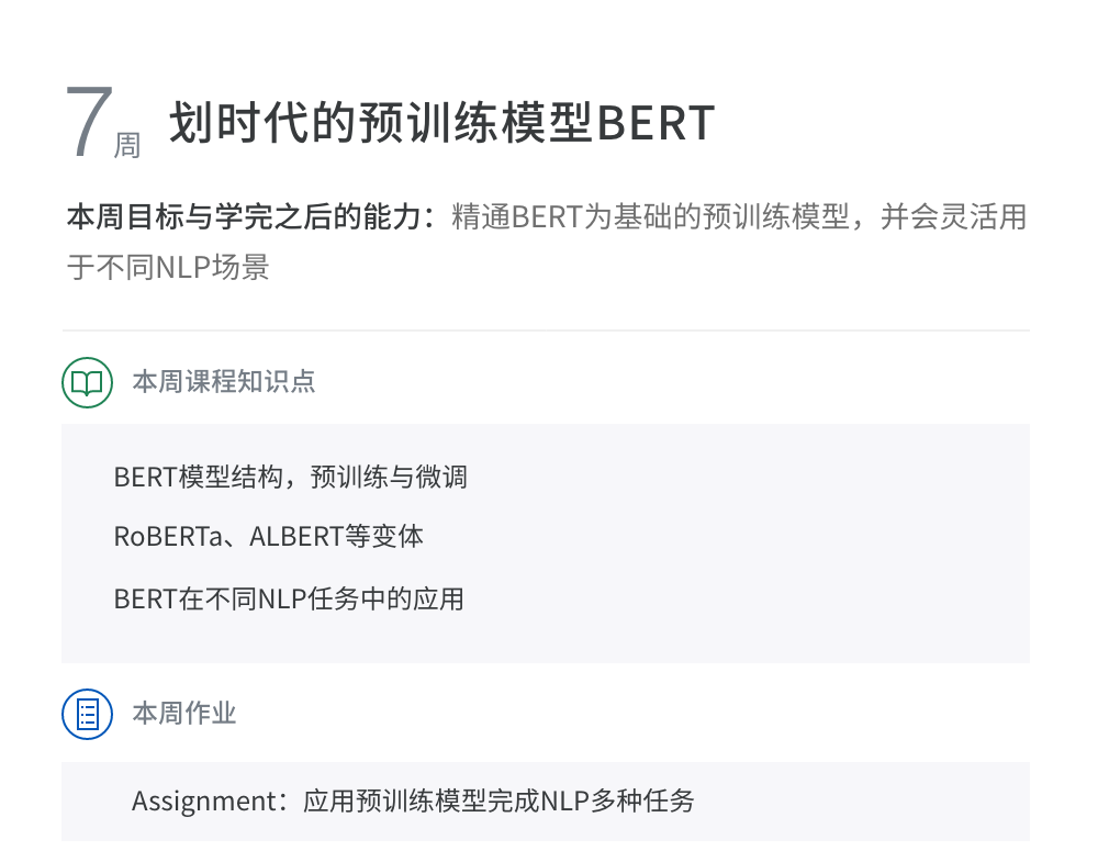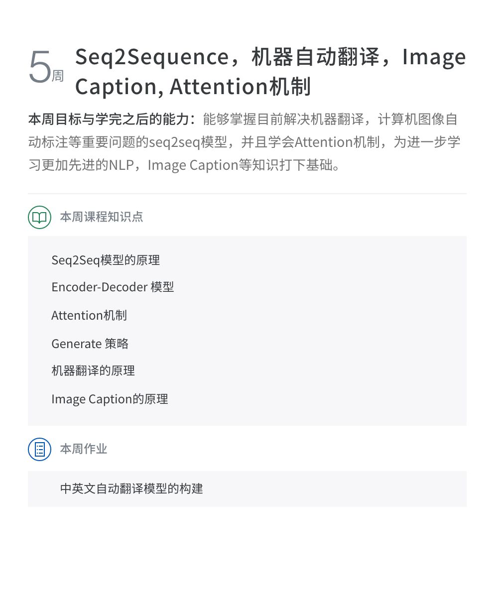 该课程主要集中自然语言处理处理高阶能力的提升。从经典的SEQ2SEQ框架到当今最流行的预训练模型,从多个纬度讲解NLP最实用最前沿的专业知识。旨在培养理解问题透彻、动手能力强、善于解决问题的同学。