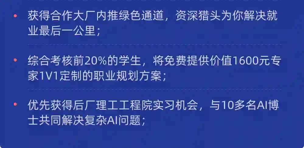 4、提供人工智能高端就业解决方案,为优秀学员提供大厂招聘内推绿色通道。