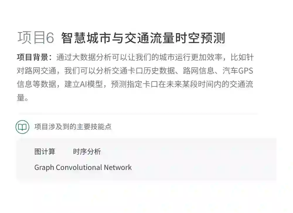 你将能够自己完成一个战胜人类的AlphaZero,或者能够使用图神经网络完成智慧城市的车辆流量时序和空间预测项目。