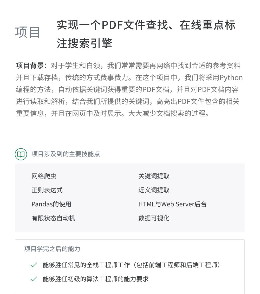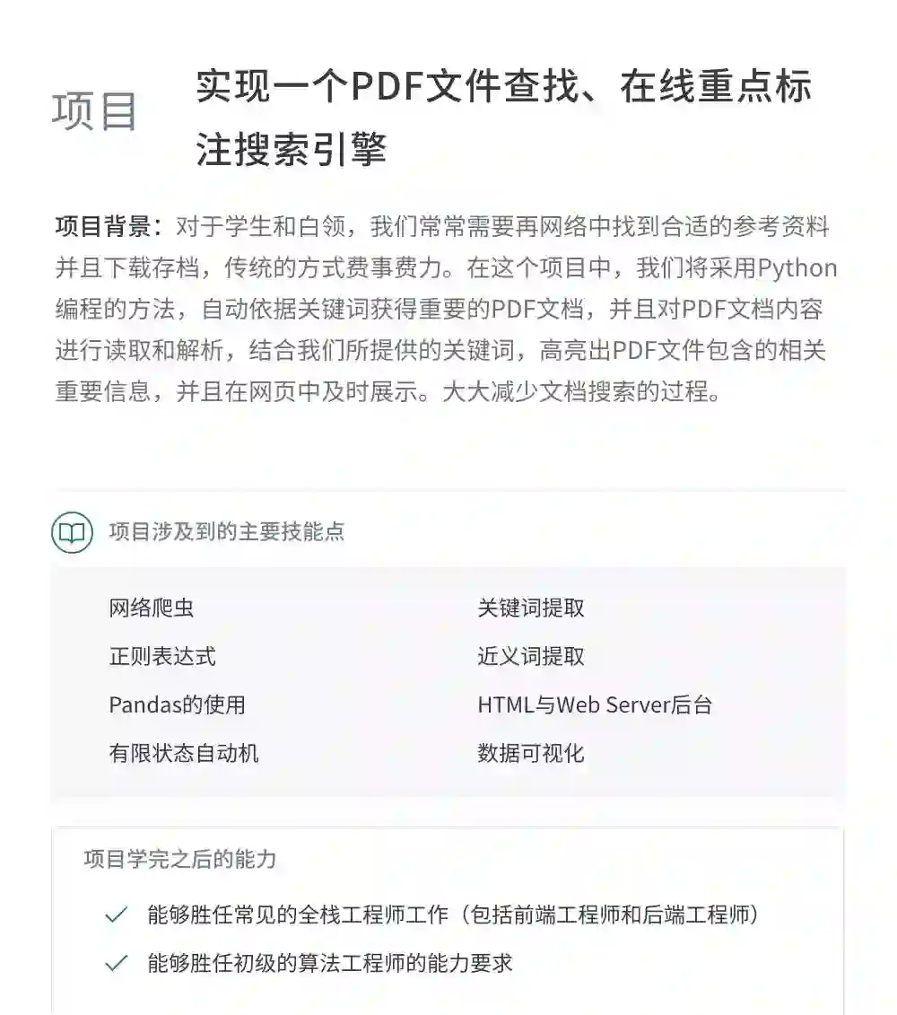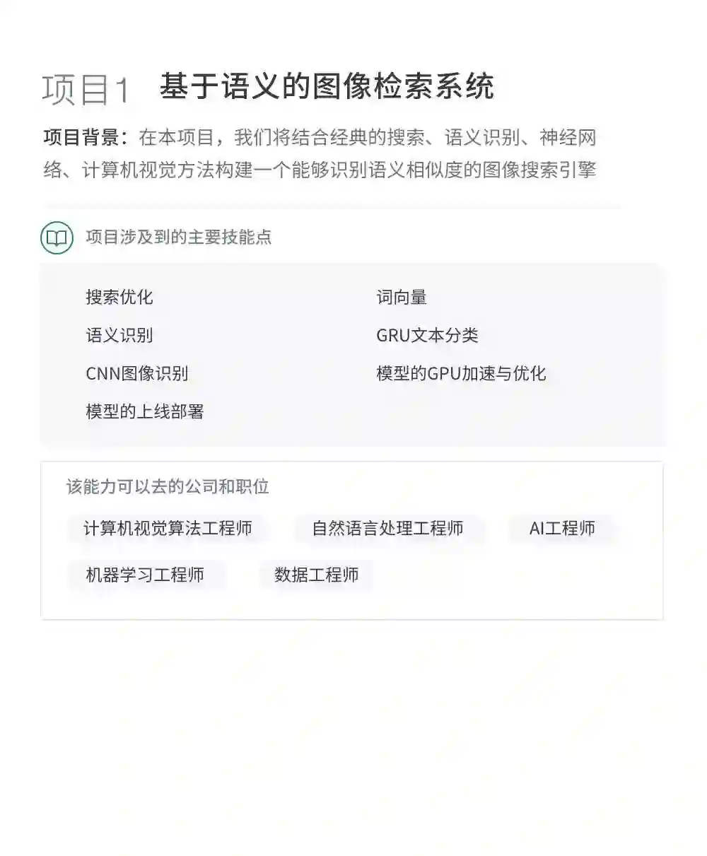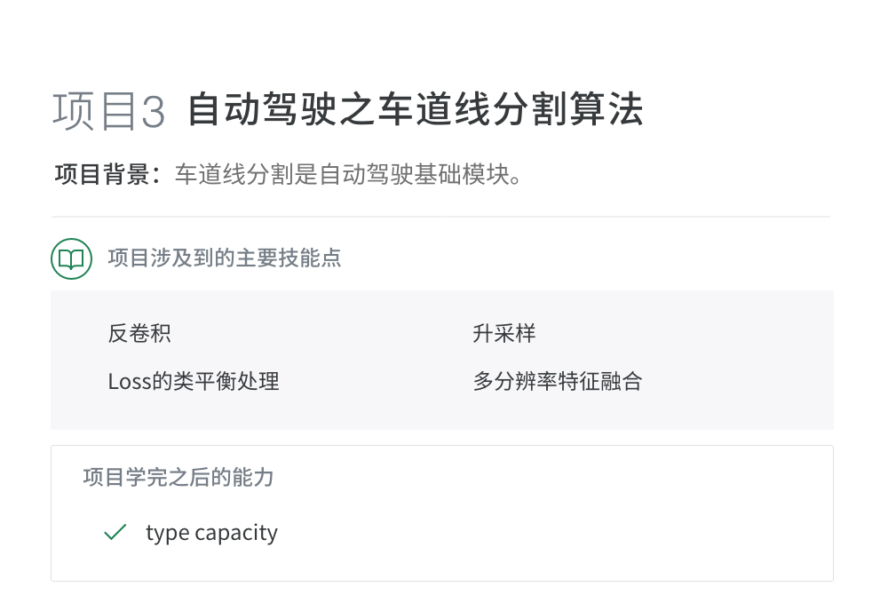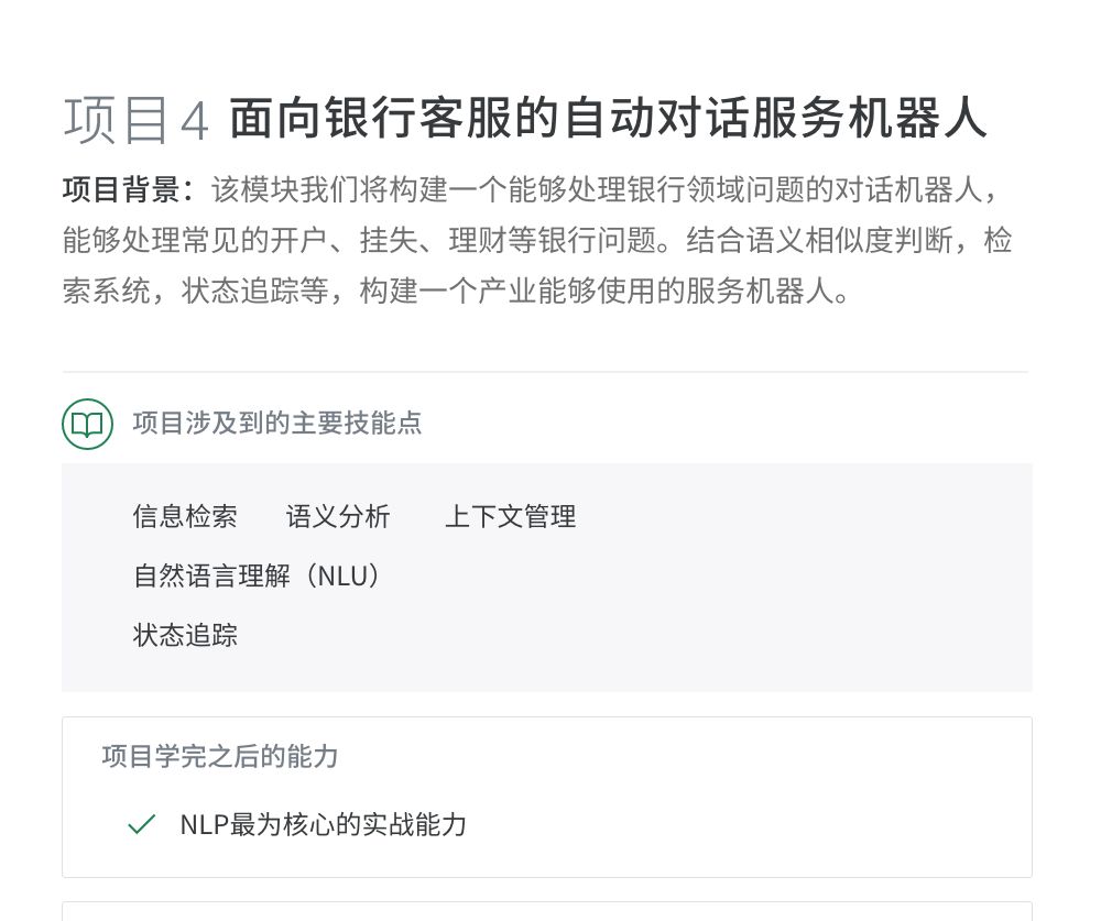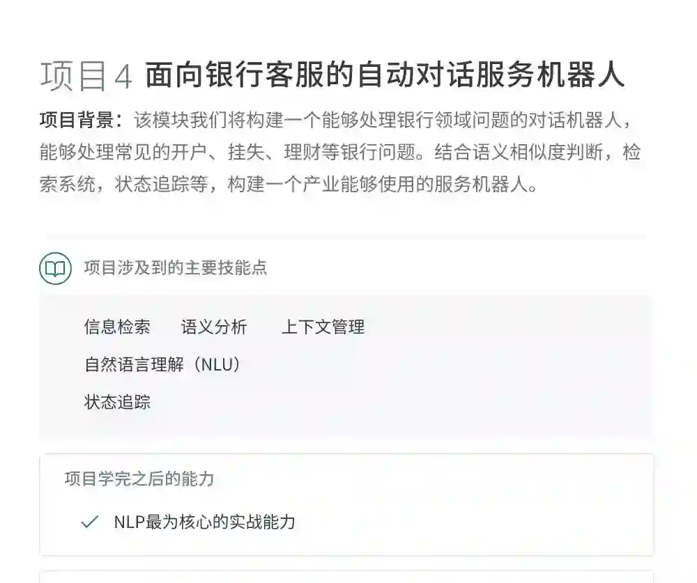 课程实训项目与百度、滴滴、华为、创新工厂等名企大厂深度合作,模拟大厂真实项目操作环境,真正提升学员真正的产业实践能力,达到一线企业核心AI岗位的要求。