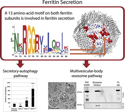 “利用这些计算工具,我们可以预测铁蛋白在其分泌中起作用的位点。”助理教授Meyron-Holtz说,“多种生化技术,包括CRISPR-Cas9技术在内,能够快速进行基因组编辑,通过控制这些特定位点证明这些环节确实影响了铁蛋白的分泌。