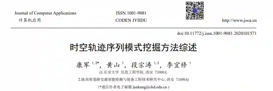 摘要 全球定位、移动通信技术迅速发展的背景下涌现出了海量的时空轨迹数据,这些数据是对移动对象在时空环境下的移动模式和行为特征的真实写照,蕴含了丰富的信息,这些信息对于城市规划、交通管理、服务推荐、位置预测等领域具有重要的应用价值,而这些过程通常需要通过对时空轨迹数据进行序列模式挖掘才能得以实现。时空轨迹序列模式挖掘旨在从时空轨迹数据集中找出频繁出现的序列模式,挖掘时空数据中隐藏的信息,例如: 位置模式(频繁轨迹、热点区域)、活动周期模式、语义行为模式。综述近来年时空轨迹序列模式挖掘的研究进展,先介绍时空轨迹序列的数据特点及应用,再描述时空轨迹模式的挖掘过程:从基于时空轨迹序列来挖掘位置模式、周期模式、语义模式三个方面来介绍该领域的研究情况,最后阐述现有时空轨迹序列模式挖掘方法存在的问题,展望其未来的发展趋势。