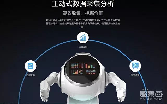 此外,在管理方面,克鲁泽Cruzr可记录用户的交互行为进行主动的数据采集,并在云端进行数据管理与分析。克鲁泽Cruzr所搭载的红外摄像头还支持实时视频功能,支持夜间看店。