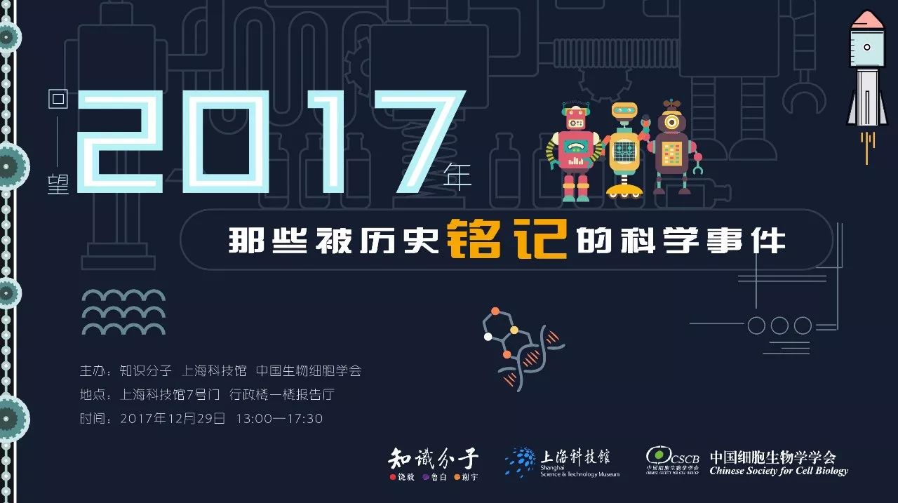 此次活动由科学新媒体“知识分子”、上海科技馆以及中国细胞生物学会共同主办,活动邀请了国内科学传播领域的优秀同行,一起盘点2017 年那些被历史铭记的重大事件。