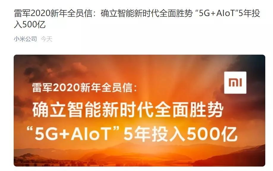 无独有偶,2020年1月2日下午,雷军发布了全员信,重点强调了小米在2020年的发展方向。