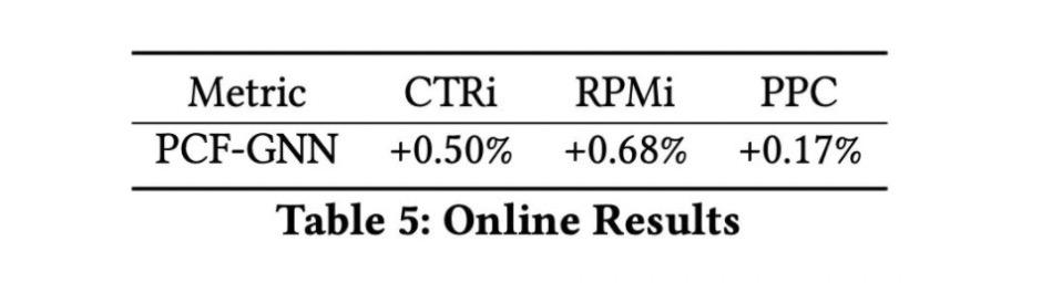 我们在线上模型中通过PCF-GNN来引入显式交叉语义信息,取得AB实验效果如表5所示。