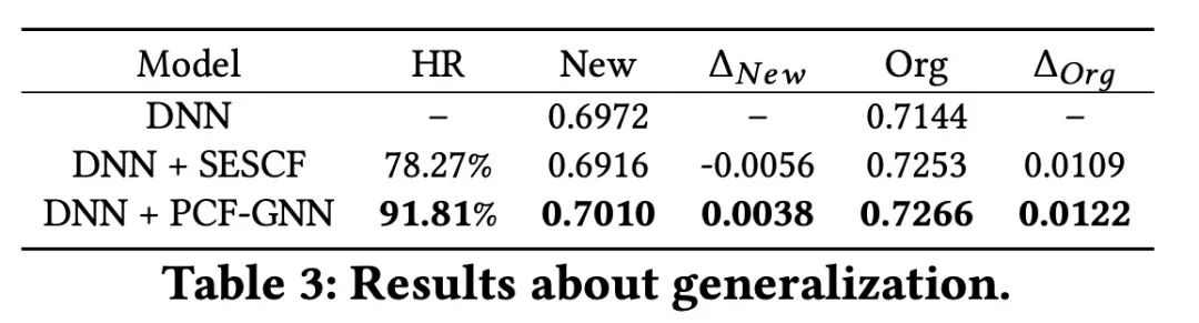 泛化性:在PCF-GNN中,显式交叉语义可以通过节点的预训练embedding来推断出边的属性(即交叉语义)。因此,对于历史中从来没有出现过的交叉pair对,只需要拿其对应的节点embedding进行推断即可。