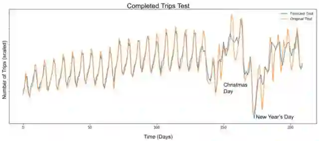 为了本文最初所设定的目标,我们建立了一个模型,使用的数据主要来自于美国五年间使用Uber来完成假期旅行的时间段,比如,像在圣诞节和元旦来临的七天之前、之间和之后所产生的数据。