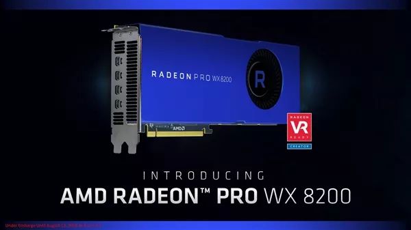 在 SIGGRAPH 2018 图形大会上,AMD 正式发布了新款图形工作站专业显卡 Radeon Pro WX 8200,号称可在 1000 美元以下价位,提供最佳的工作站图形性能。