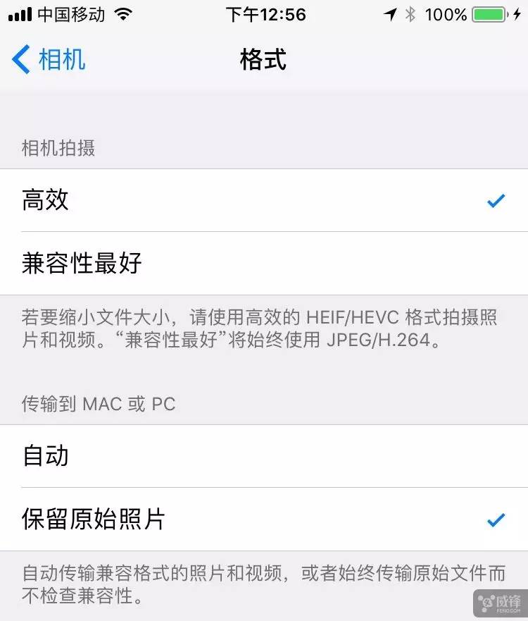 按照苹果介绍,iOS 11 引入的是一项名为“高效图像文件格式”(High Efficiency Image File Format,简称 HEIF) 的新一代压缩技术,可让 iPhone 7 和 iPhone 7 Plus 拍摄的每一张照片保有和以往相同图像质量的前提下,缩小文件尺寸,甚至是以往的一半,只要在相机设置中打开高效率和保留原档的设置即可。对于视频,苹果也提供了全新的 HEVC 编码压缩标准,也是减少空间占用但质量不缩水的作用。