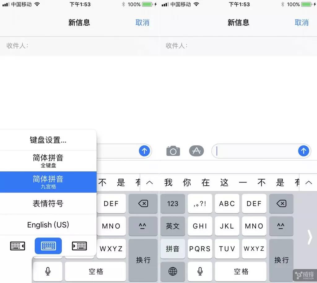 在新版 iOS 11 系统中,九宫格键盘输入英文和中文变得比以往更简单,既支持输入拼音也能够输入英文,用户不必切换键盘,或减少在键盘之间进行切换。同时,苹果为其增加了新的语言引擎,帮助更快、更频繁地识别英语单词,因此在九宫格键盘可用两种语言打字。