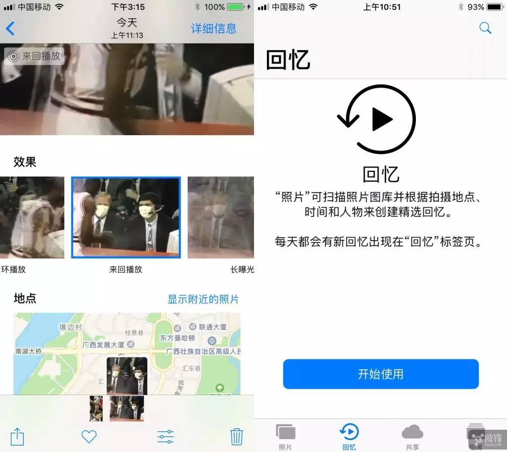 同时,回忆功能升级了,在横向和纵向模式下都可以播放,它还可自动创建更多“回忆”类别,如宠物或生日派对等。iOS 11 因为加入了 AI 技术,通过机器学习及照片相关数据,可以创造更多更美好的回忆相册,就算你长期拍摄宠物,也能轻松帮你打造一本属于你宠物的回忆相册。不过,自己 iPhone 中没有太多照片,以上功能就不多体验了。