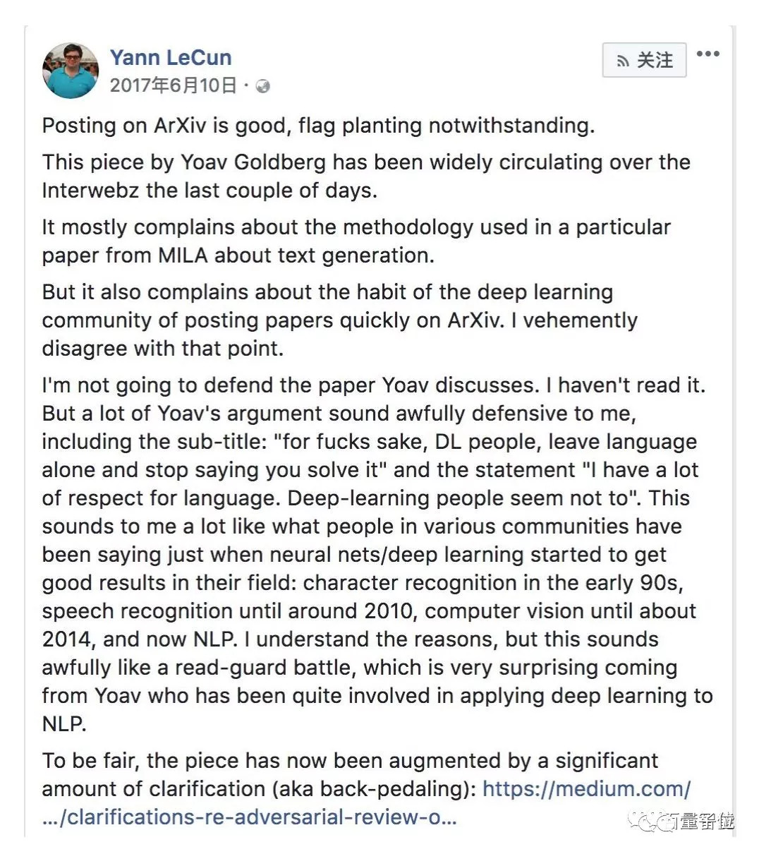 重点是,这篇文章引发了自然语言处理(Natural Language Processing, NLP)大神 Yoav GoldGerg和深度学习(Deep Learning, DL)大神 Yann LeCun 的论战。