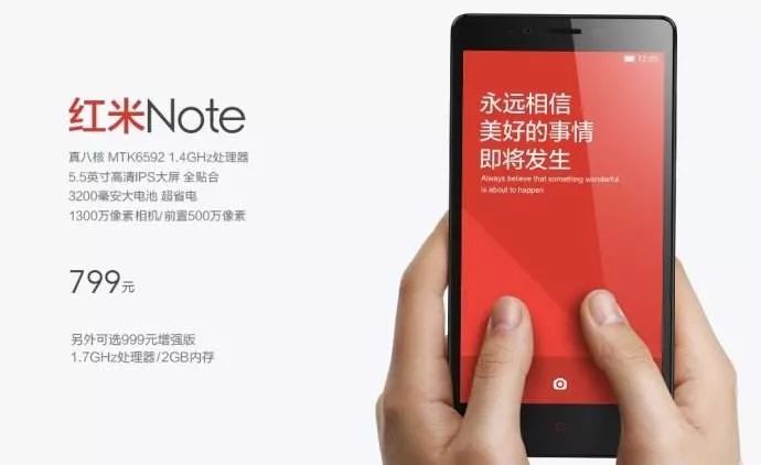 值得一提的是,同样是基于 MTK 6592 处理器,红米 Note 推出了标准版、特别版和增强版三个版本,价格分别覆盖 799、899 和 999 三个档位。