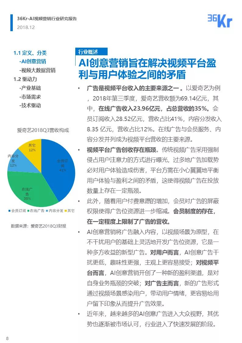 如何在保证用户体验的同时使广告能够触达到用户是近年来视频行业关注的一个重点问题。AI视频营销从广告呈现和用户触达两方面考虑,解决视频行业的盈利痛点。