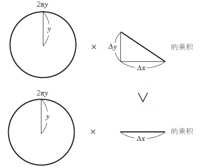 那么,此时问题就可以替换一下了,即求 2πy × △x 的值是多少。